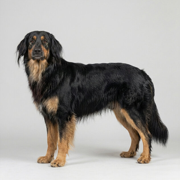 | Fellbeschaffenheit: | Wasserundurchlässiges Stockhaar, das Deckhaar ist mäβig lang und gerade, die Unterwolle ist weich und dicht |