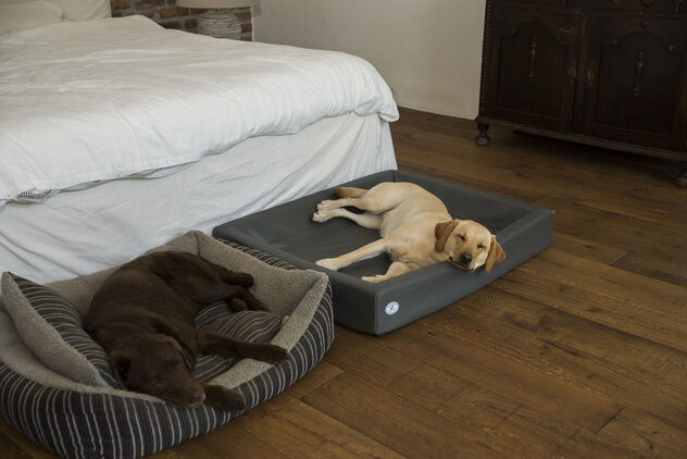 Hund und Körbchen – das ist also nicht immer gleich wie Pott und Deckel. Manchmal muss man sich erst durchtesten. Es ist wichtig, dass die Liegestelle zu deinem Hund passt. Ein Welpe, der in den ersten Wochen nach dem Einzug die Welt mit seinem Maul erkundet, benötigt nicht selten eine beißsichere Liegestelle. Das schicke Weidenkörbchen ist daher selten eine gute Idee – außer du brauchst noch ein wenig Anzündholz für deine Abende vor dem Kamin. Bei erwachsenen Hunden dürfen gern die individuellen Vorlieben berücksichtigt werden. Manche Hunde liegen am liebsten lang ausgestreckt auf einer einfachen Matte. Andere rollen sich gern eng in einem runden Körbchen zusammen. Einige Hunde lieben es, den Kopf auf einen erhöhten Rand oder ein Kissen zu legen, wieder andere liegen am liebsten zugedeckt oder sogar in einer Höhle. Für Hunde-Senioren eignen sich Körbchen aus viskoelastischem Schaum, da diese keinen Gegendruck erzeugen, sondern sich dem Körper des alten Hundes anpassen. Natürlich gibt es auch Hunde, die das weichste, teuerste Körbchen ignorieren und sich lieber auf den Boden legen. Häufig sind das Hunde mit viel Unterwolle. Hat man dann noch eine Fußbodenheizung, ist diesen Hunden selbst die leichte Decke auf dem Boden zu warm. In dem Fall kannst du den Liegeplatz deines Hundes auch einfach nur mit Klebeband markieren.