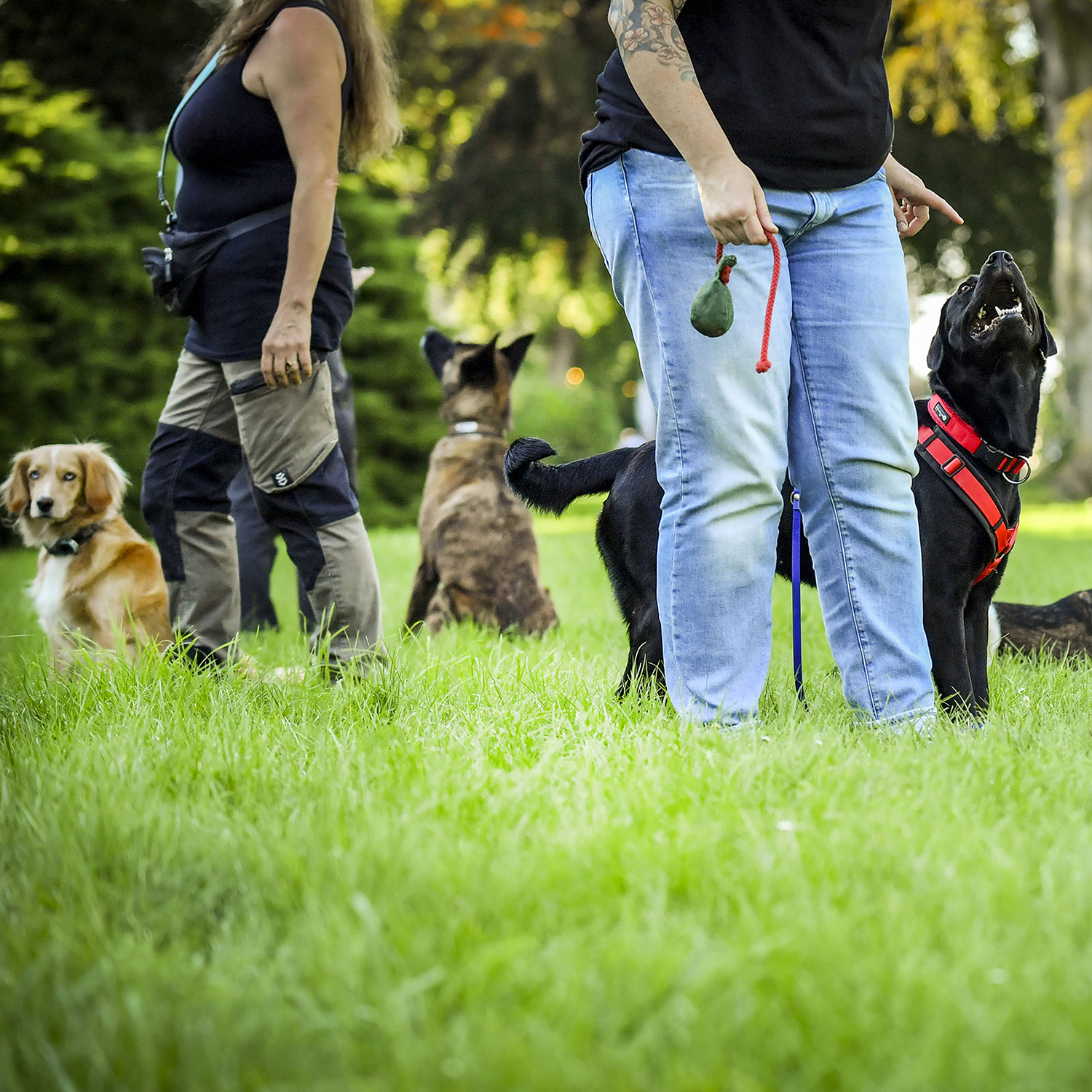 Die Hunde müssen in Gegenwart von anderen Hunden ansprechbar und sozialverträglich sein, um an Gruppenkursen teilnehmen zu können!