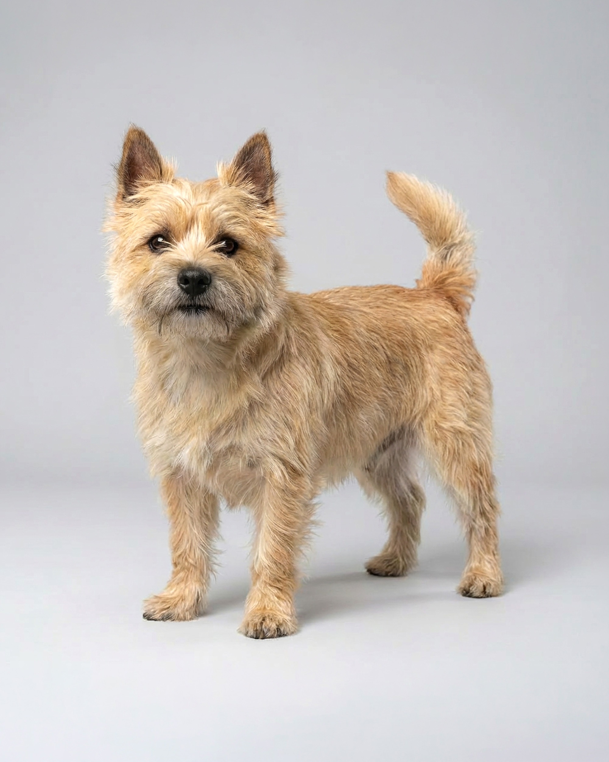 Der Cairn Terrier ist klein, aber keineswegs zierlich. Mit etwa 28 bis 31 cm Schulterhöhe und 6 bis 7,5 kg Gewicht wirkt er kompakt, kräftig und erstaunlich widerstandsfähig.